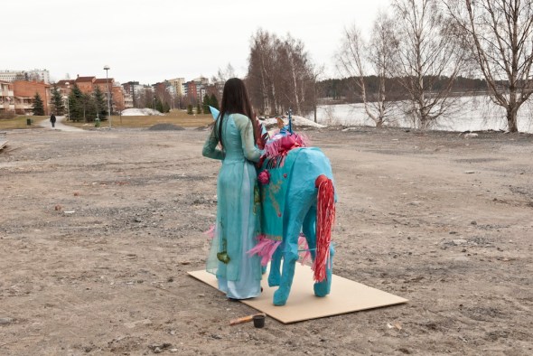 A sculpture/ performance piece from 2012 inspired by Vietnamese ancestor veneration traditions. A paper representation of Sleipnir, the 8 legged horse from Norse Mythology who could transcend between realms was burnt together with a personal letter and sent to my deceased grandmother in the afterlife. It is a Vietnamese Ancestor Veneration tradition to make colourful paper representations of everyday objects and burn them for the dead.